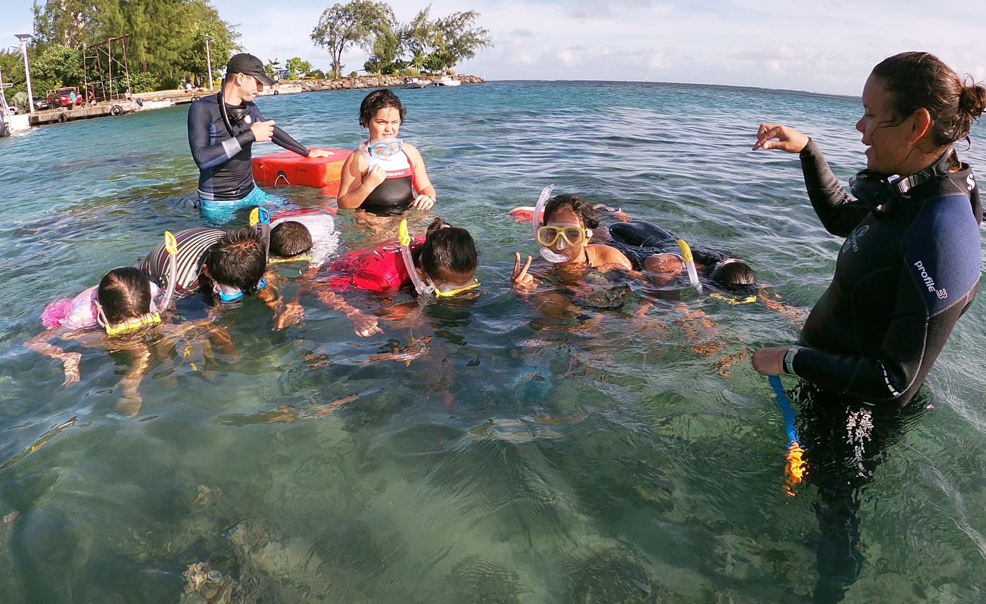 Retour en images sur la mise à l’eau des élèves de CM2 de Mesdames PAHOEANI et PIFAO et Monsieur TEUPOO de l’école FAREROI ELEMENTAIRE, gestionnaires de l’AME avec Adeline, Laëtitia, Gaël, Roland et Tavae.