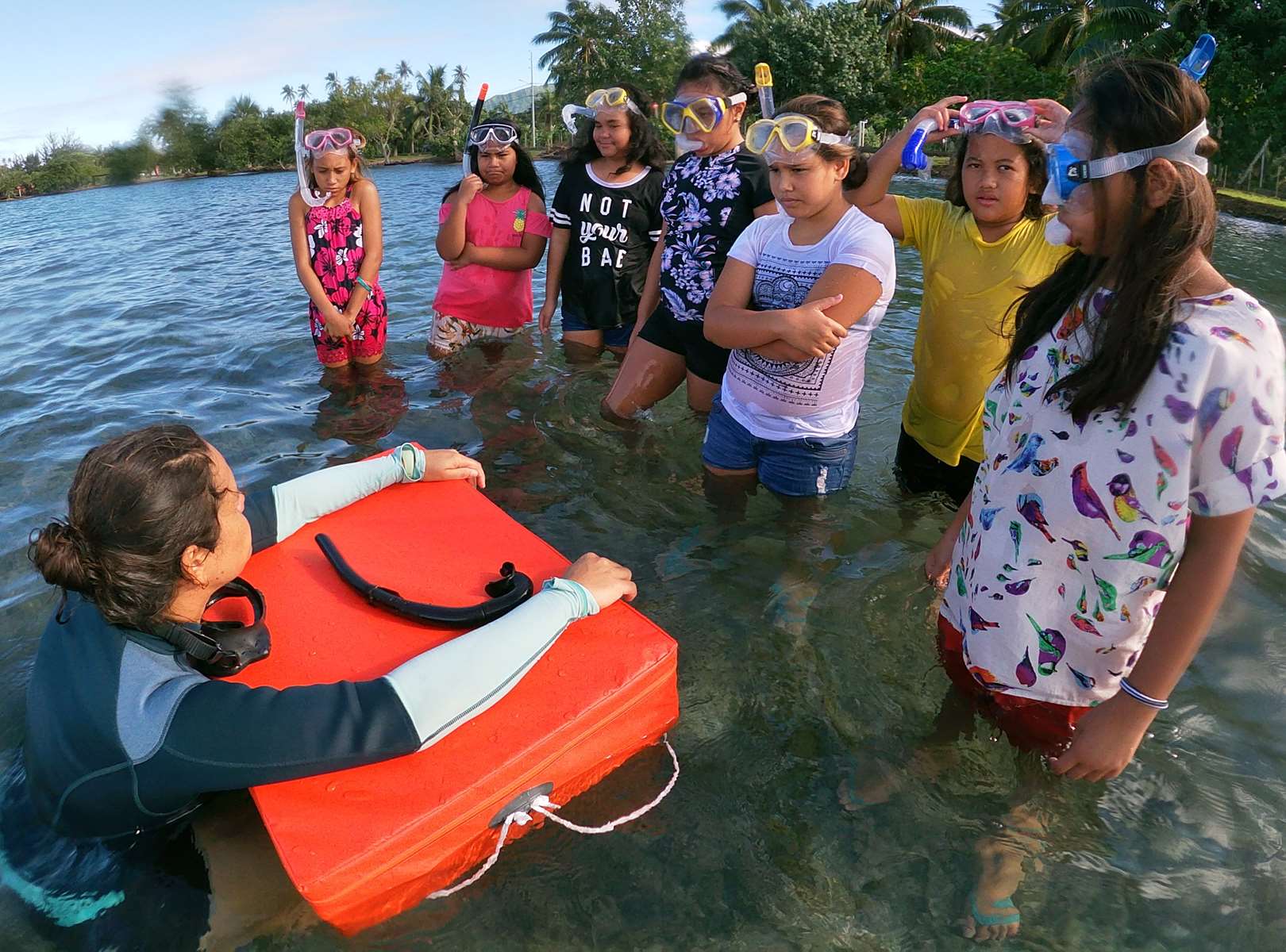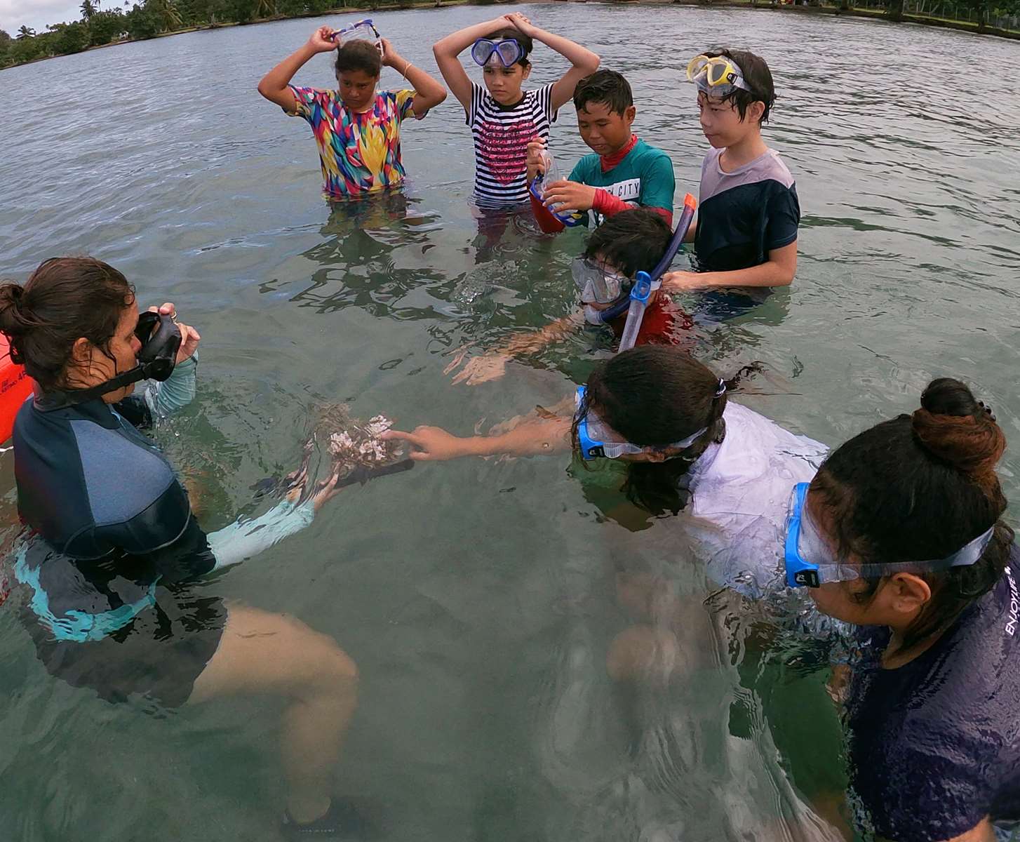 Retour en images sur la mise à l’eau des élèves de CM2 de Mesdames WONG KAO et TIUNU de l’école de Mairipehe, gestionnaires de l’AME avec Adeline et Laëtitia, Roland et Tavae.