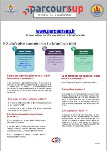 – Fiche Info PARCOURSUP en français (22 janvier 2019) Fiche Info PARCOURSUP en Reo Tahiti (31 janvier 2019)