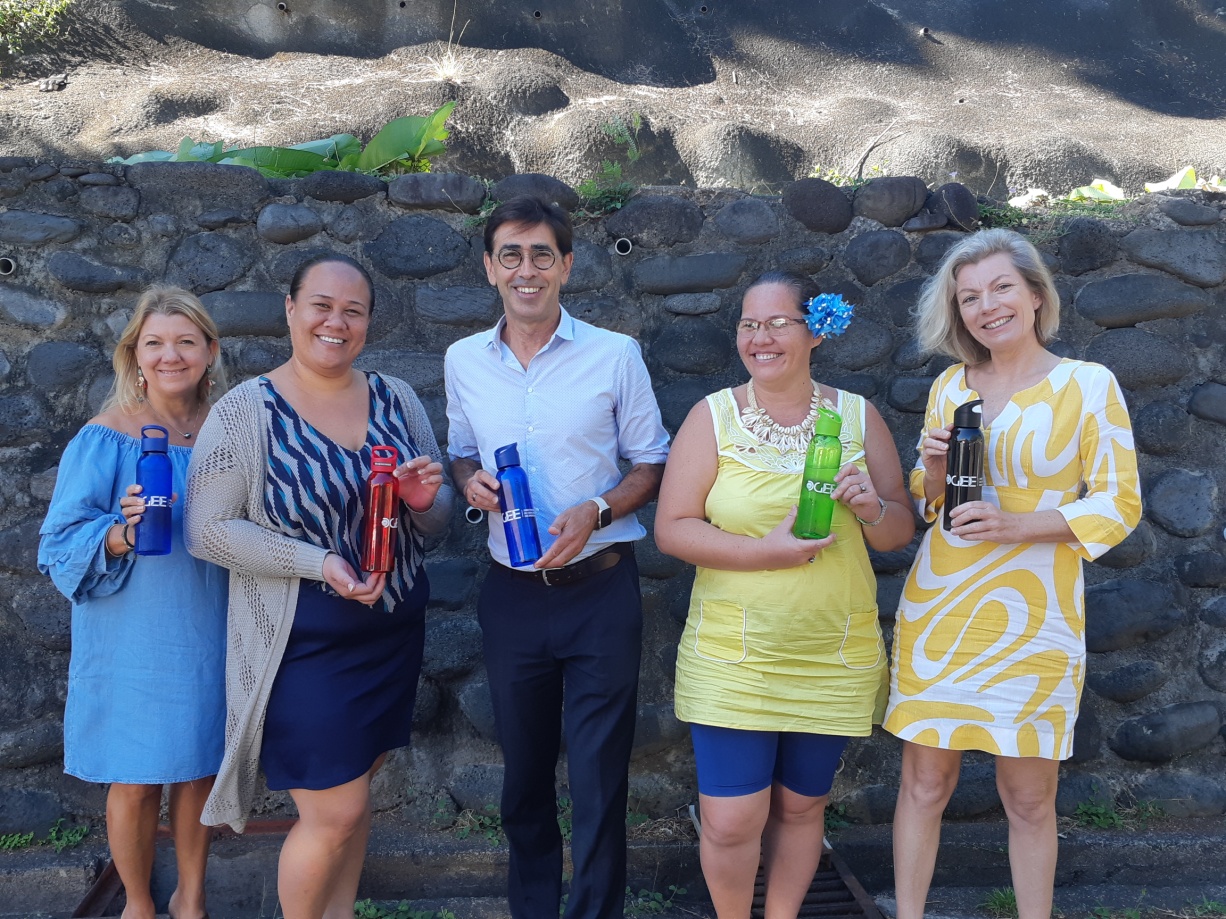 Savez-vous que l’utilisation de 7 bouteilles en plastique par semaine équivaut par an à 364 bouteilles, 39 kg de CO2 émis dans l’atmosphère, 109 200 km de transport de la production au magasin (et bien plus encore en Polynésie !), 5 kg de déchets non recyclables et 255 L d’eau gaspillée pour la production de ces bouteilles en plastique !
