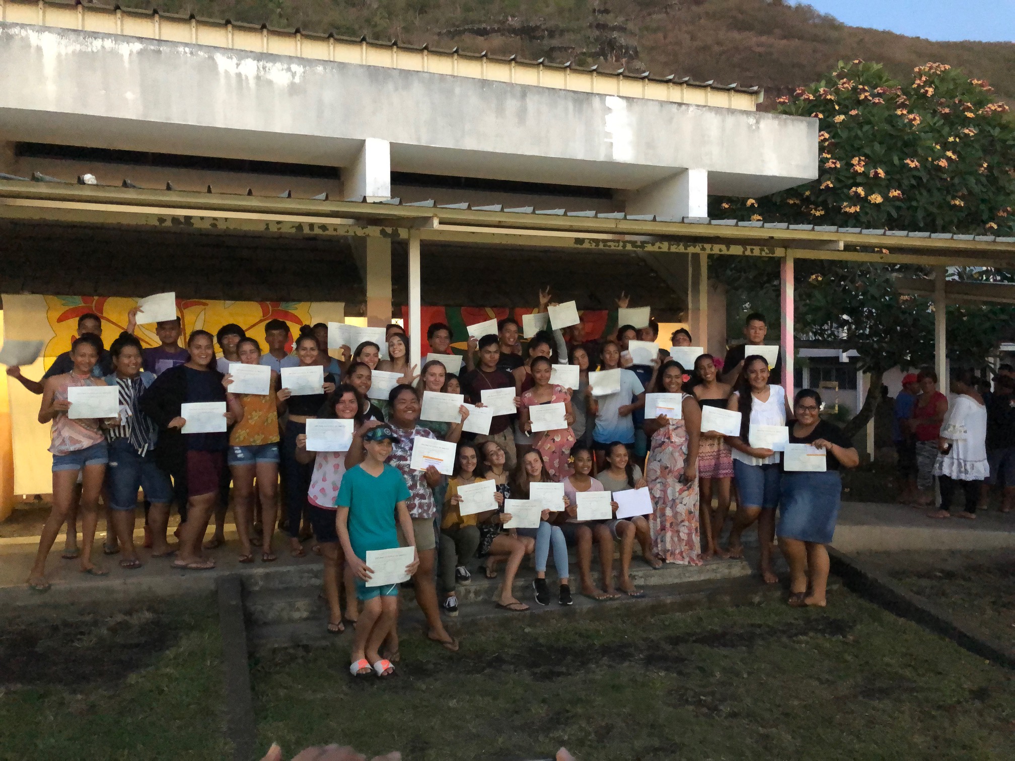 En présence de Mme Rita Huuti Delmas 2nde adjointe au maire et représentante de la commune de Paea et de M. Jean-Michel Garcia directeur du Département de la vie des écoles et des établissements représentant de la DGEE et de madame la Ministre de l’éducation, la centaine de lauréats a reçu des mains de leurs anciens enseignants leur DNB.