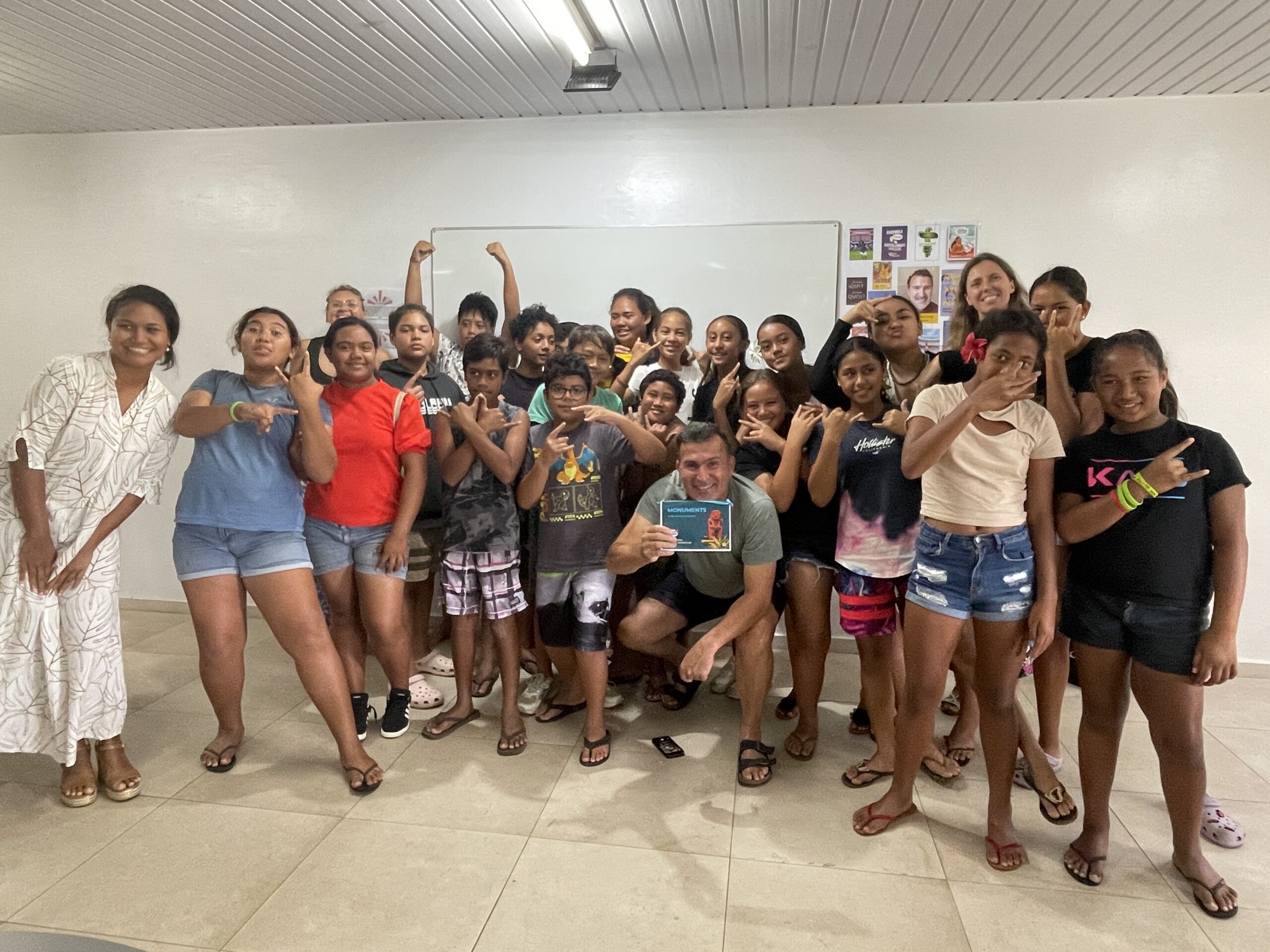 Les rencontres scolaires s’achèvent sur Tahiti mais se poursuivent sur l’île de Hiva Oa, cette semaine. De nouvelles émotions et de magnifiques partages en perspective, de futurs auteurs ou illustrateurs à motiver, avec en prime, la magie des Marquises.